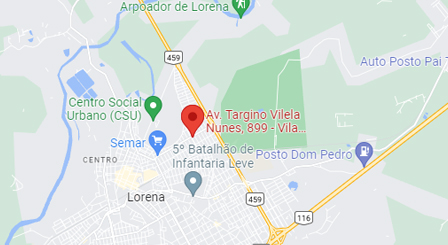Localização: Avenida Targino Vilela Nunes, 899. Bairro Vila Nunes. Lorena, SP